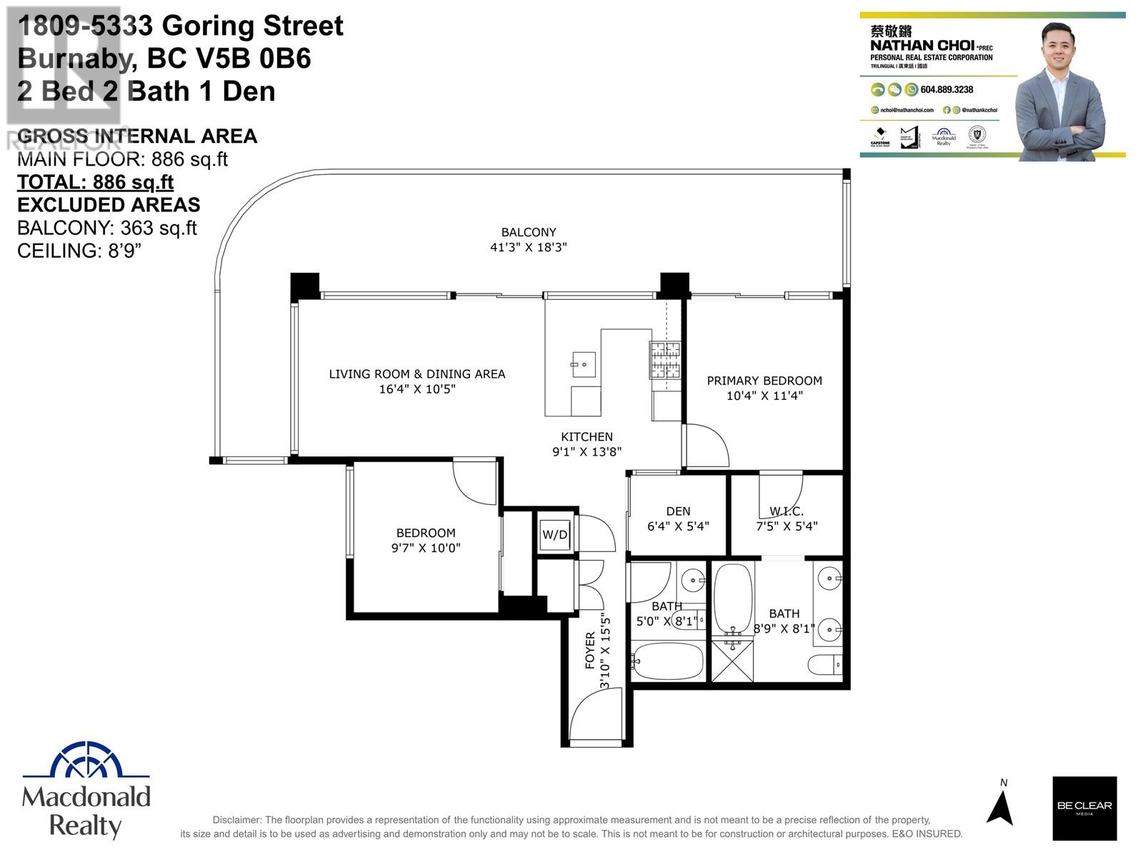 - Area 886 sq ft
