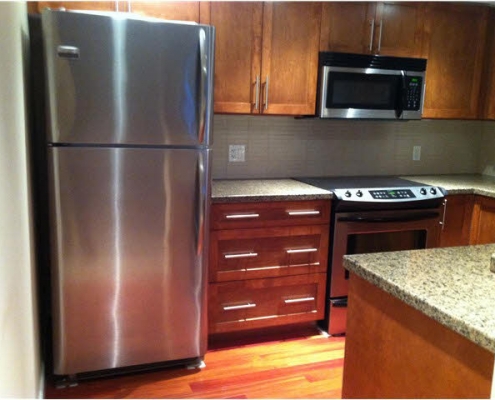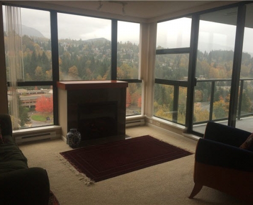 New Port Village – Beautiful spacious 2 bedroom and two bathroom with spectacular view of mountain and valley.Gorgeous Cherry hardwood floors in the foyer and kitchen. Open kitchen with granite counter tops, SS appliances and beautiful cabinets with double sink and garbage disposal . Floor to ceiling glass walls in living room plus access to a largebalcony and cozy fire place with granite surrounding makes this unit ideal to call home. Master bedroom has huge walk-incloset with French door. High quality carpets in living and the two bedrooms. In suite laundry. Was rented at$1580/month.