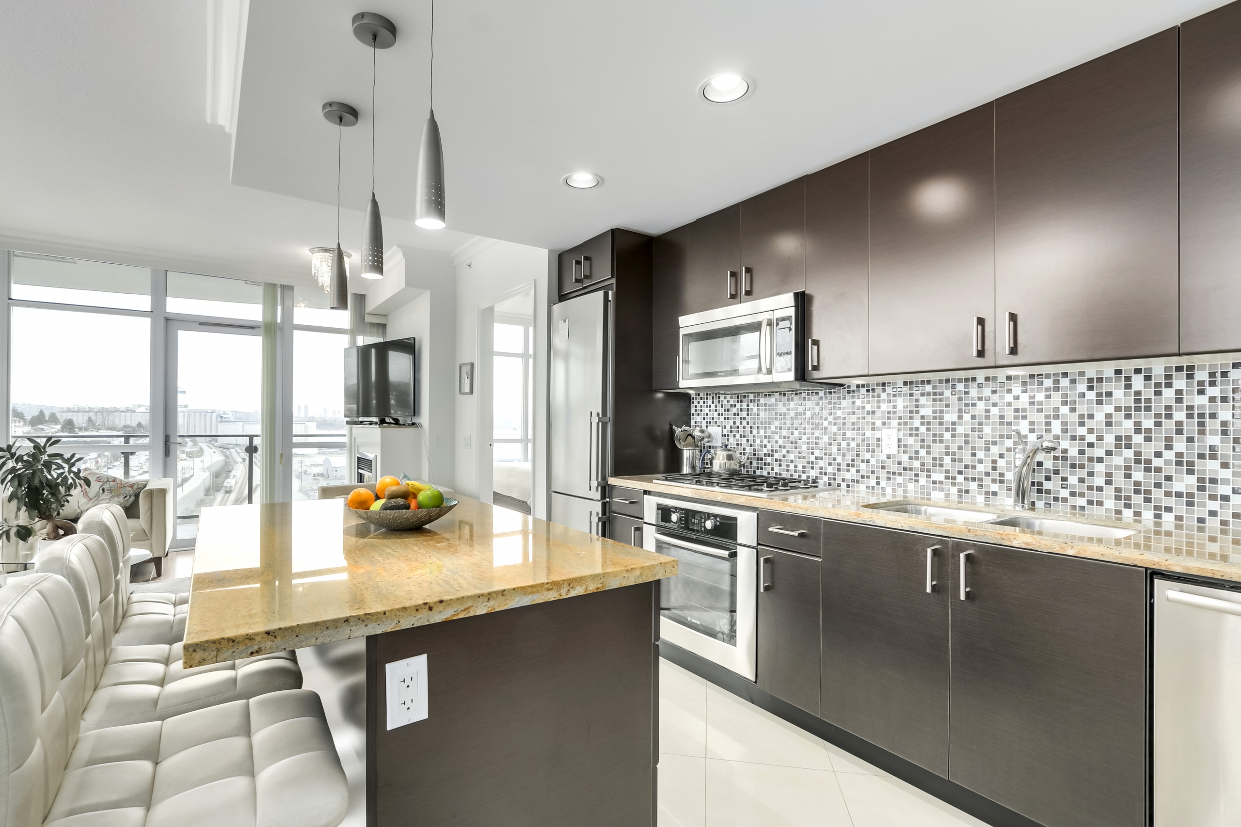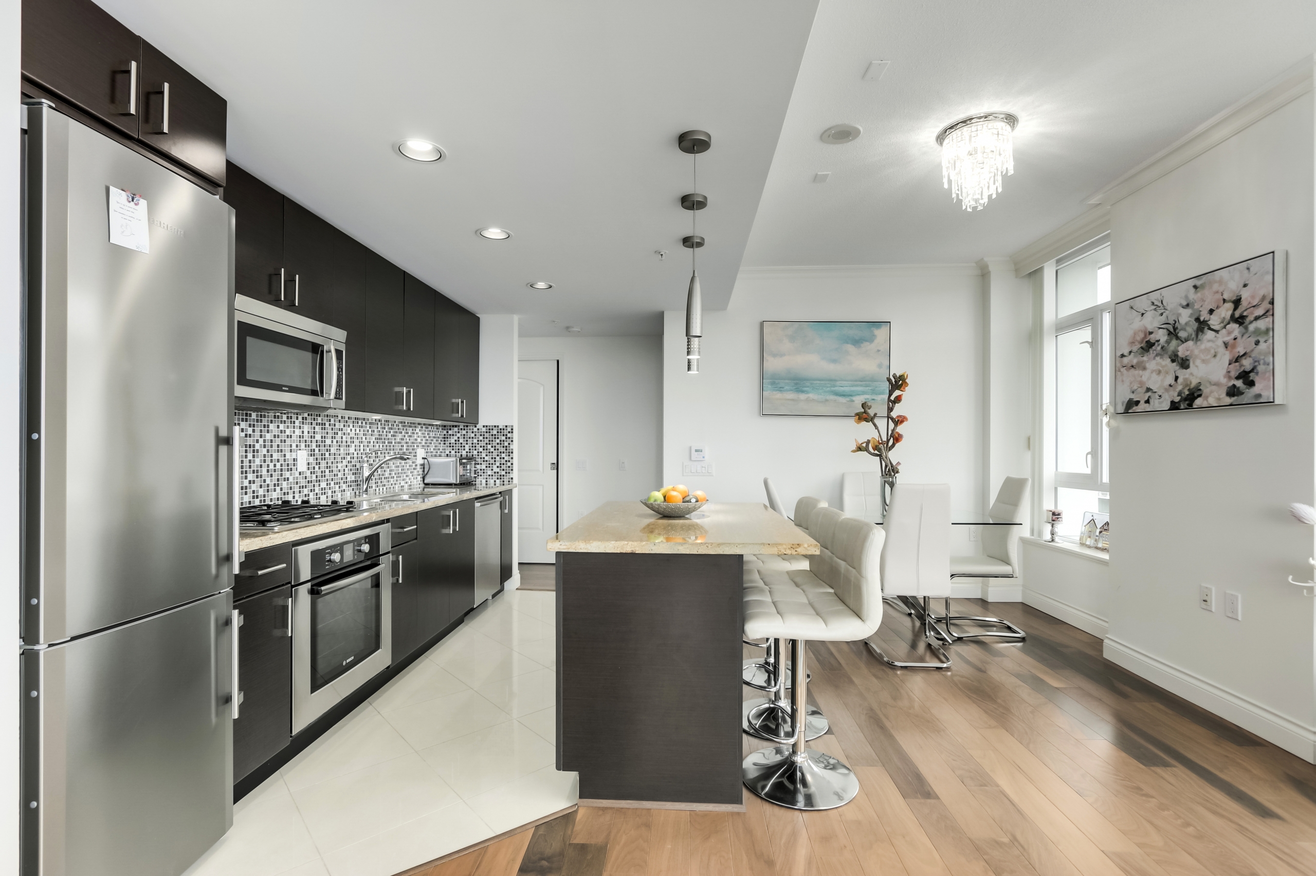 A large and Bright 2 BEDROOMS, 2 BATHROOMS corner suite with views to Grouse, Seymour Mountains & the water. A great corner layout that features a large kitchen with soft close cabinets, granite counter tops, Liebherr and Bosch stainless appliances including gas cook top. Special features include air conditioning, 9 ft. ceilings, crown moldings & fireplace. Enjoy the huge amenity space within the building or the INDOOR POOL, GYM, STEAM ROOM, SUANA & WHIRLPOOL at the adjacent Pinnacle Pier Hotel. Enjoy living within walking distance to the Seabus, shops, restaurants, and all that vibrant lower Lonsdale has to offer! It’s all part of your wonderful lifestyle at The Pier.