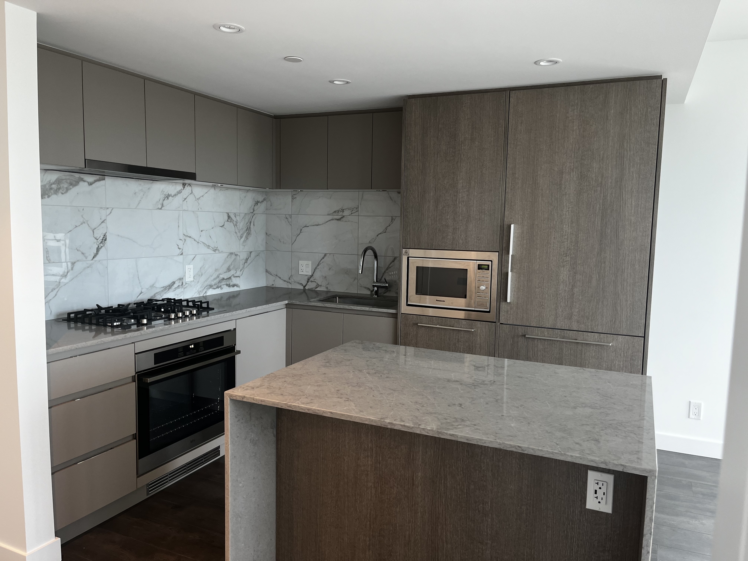 BRAND NEW ; bright and well laid out floor plan ; with privacy between the bedrooms; 2-bed, 2-bath condo at Apex by Denna Homes. It offers approximately 820 sqft of modern living space. Enjoy south-facing mountain views and a private balcony with a gas BBQ connection. The kitchen boasts stainless steel appliances, including a 5-burner gas cooktop and integrated fridge. Conveniently located near parks, cafes, and transportation. You will enjoy RESORT-STYLE CLUB AMENITIES including well-equipped EXERCISE center; an stunning LAP POOL, STEAM & DRY Sauna, LOUNGE, Spacious PARTY room, GUEST suite.