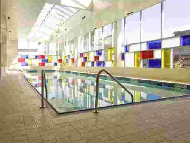 Open floor plan, floor to ceiling windows , SS appliances and in suite laundry . Amenities include indoor pool, hot tub, media room, exercise room, clubhouse and concierge services.