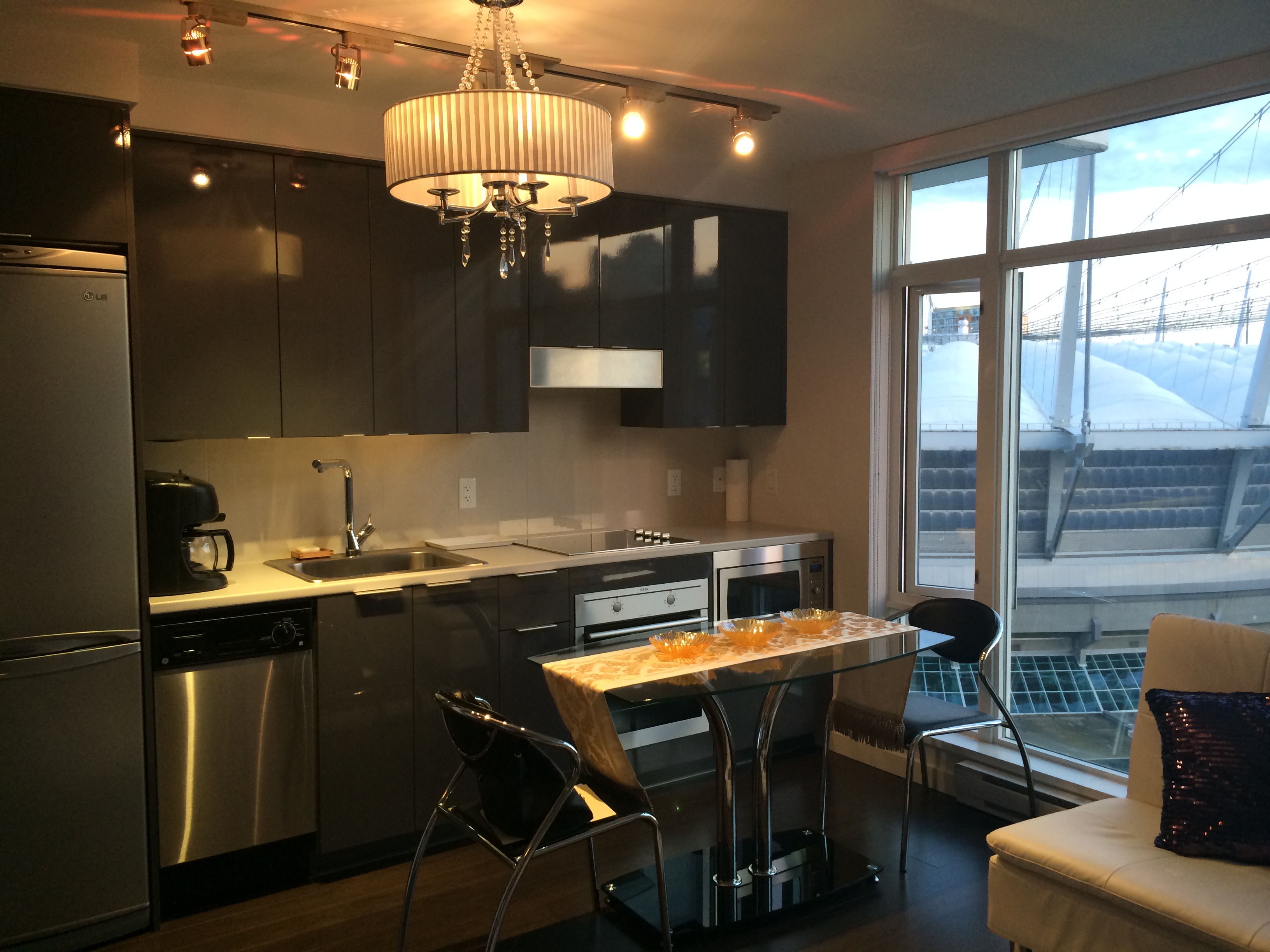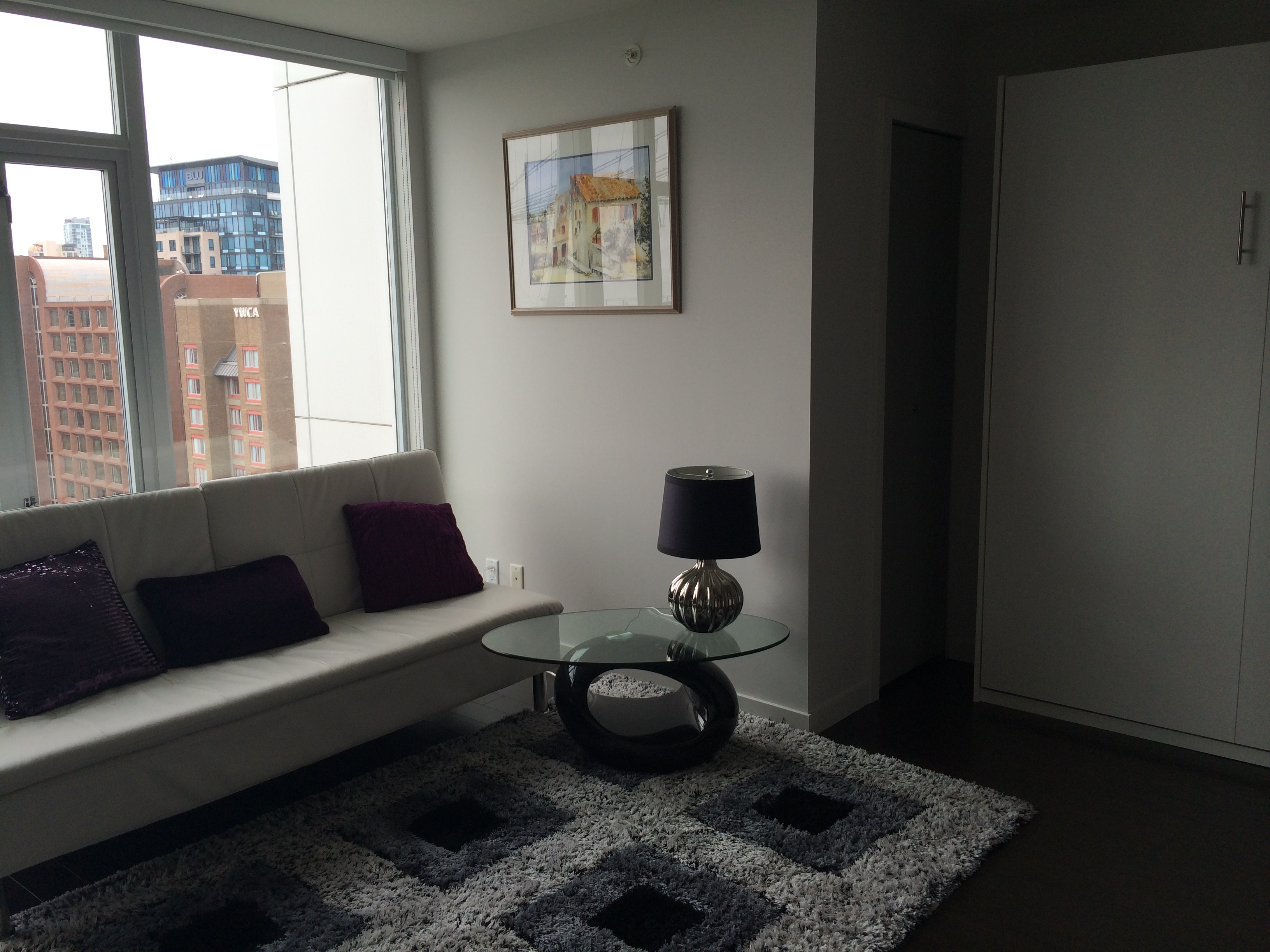 Like new studio with in suite storage – Bright south facing with view of the new stadium roof – luxurious concrete construction. Top of the line Miele appls. 1 block away from ROBSON St, a few steps away from COSTCO, the skytrain station & the library. You’re just a short walk away from all shops & amenities in Yaletown. You have access to all the amenities available to the Spectrum buildings including Swimming Pool, Gym, Hot tub, Yoga Room and more.